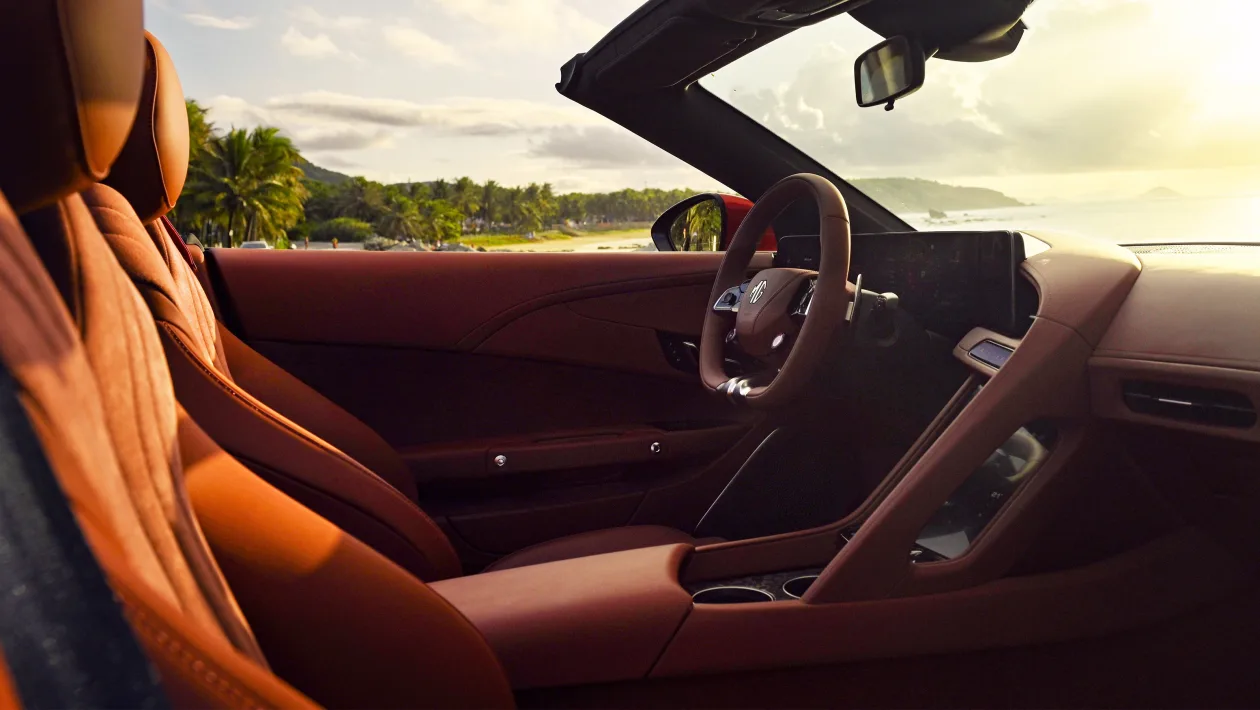 Inside the cockpit, the MG Cyberster offers a sanctuary of sophistication and technology, where every detail is meticulously crafted to enhance the driving experience. From premium materials to advanced connectivity features, the interior of the Cyberster is a testament to MG's commitment to luxury, comfort, and innovation.